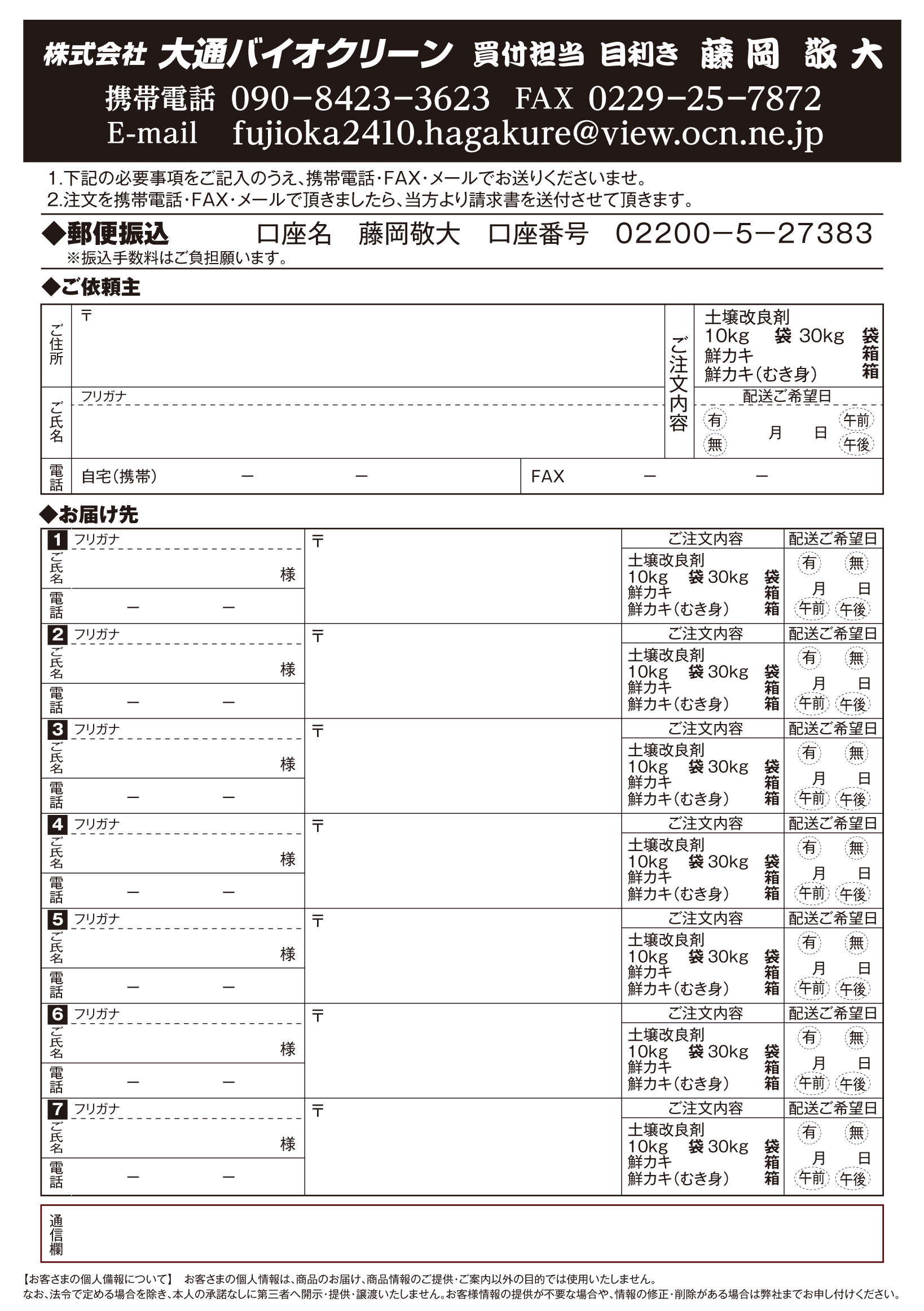 下記シートをクリックするとPDFが開きます。プリントして弊社へFAXしてください。